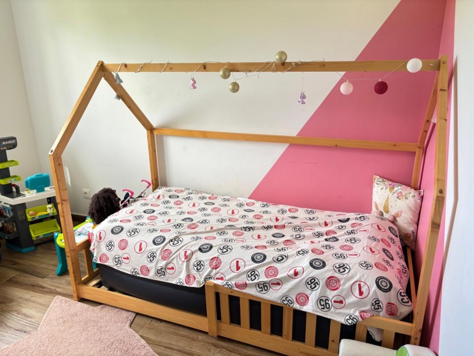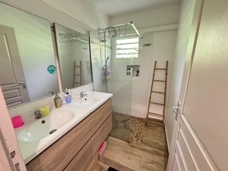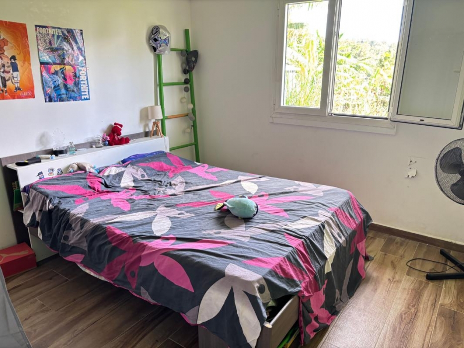 Maison de type F5 comprenant séjour, cuisine, salle d'eau, trois chambres, une chambre avec salle d'eau.