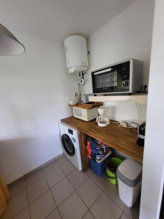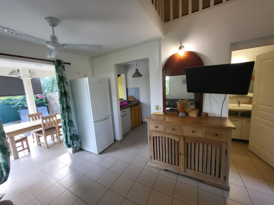 Vous disposez d'une vaste chambre climatisée en mezzanine avec un lit d'appoint et un double couchage possible dans le sejour sur un canapé convertible neuf, d'une cuisine équipée avec un passe-plat donnant sur la terrasse ...de quoi garantir un séjour tres agréable à des vacanciers ou pour un pied-a-terre à St Francois.....d'autant que ce bien est vendu integralement meublé !