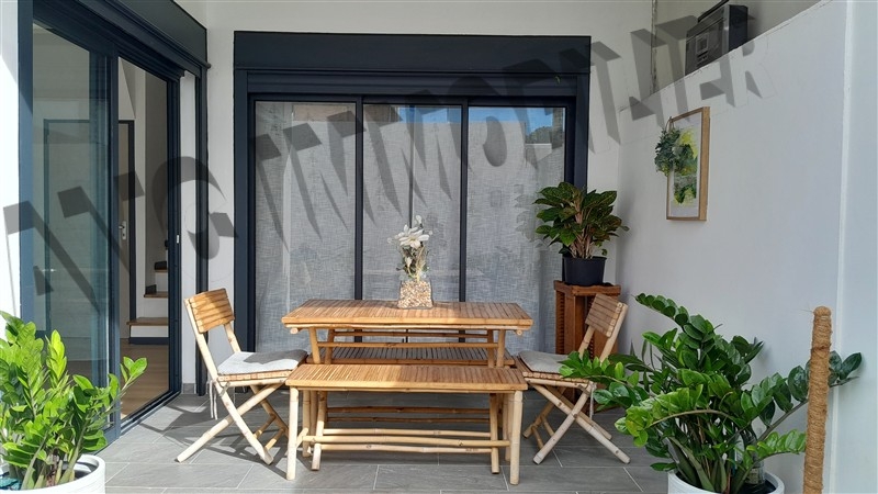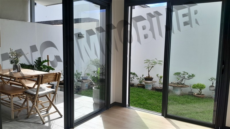 Charmante villa mitoyenne récente de type F3 de 60 m² avec jardin, située à moins de 10 minutes de la 4 voies et proche de toutes commodités. L'étage s'organise autour de 2 chambres climatisées avec placard et une salle d'eau (avec douche à l'italienne et meuble sous vasque). Ensuite au rez-de-chaussé, un wc séparé, une cuisine entièrement aménagée et équipée ouverte sur le séjour donnant sur la varangue et le jardin, possibilité de stationner deux véhicules, portail manuel et chauffe-eau solaire.