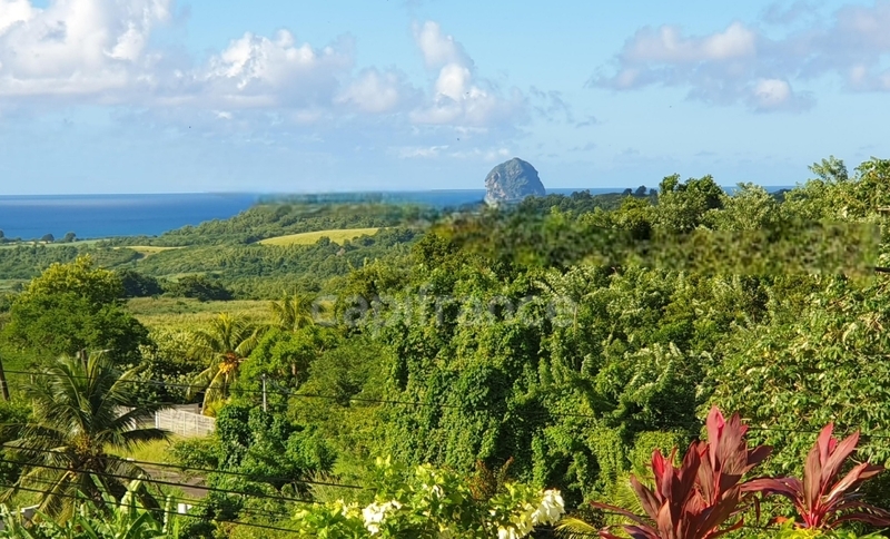 Sur un terrain clos et arboré de 1 000 m², cette propriété soigneusement conçue développe 113 m² de surface habitable avec une emprise au sol de 199 m². L'architecture privilégie les volumes et la lumière : séjour cathédrale, vastes terrasses couvertes et une orientation offrant des couchers de soleil inoubliables sur la mer des Caraïbes, le Rocher du Diamant et la Dame Couchée.