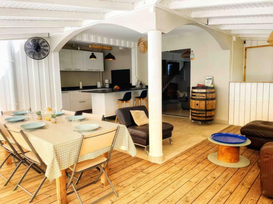 Idéalement située dans un quartier résidentiel calme et recherché, à quelques pas du bourg et de la plage, cette maison entièrement rénovée avec goût et prestations de qualité d'environ 101,5 m² offre un cadre de vie privilégié, aussi bien pour une résidence principale ou secondaire que pour un investissement en location saisonnière.