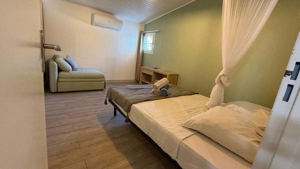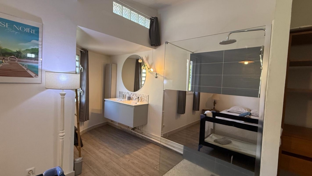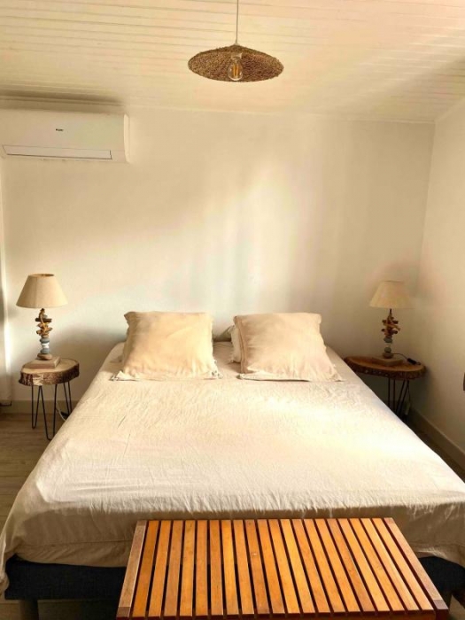 La maison se compose de trois chambres climatisées, dont une belle suite parentale avec salle d'eau privative, ainsi que deux autres salles d'eau, garantissant confort et intimité à chacun.