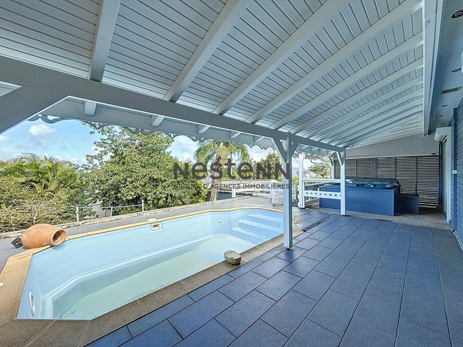 A Vendre - Maison en Bois avec Piscine et Vue Mer à Sainte-Rose Lotissement Labiche, Bebel Sainte-Rose au prix de 375 000 euros HAI Découvrez cette maison moderne en bois pleine de charme, située dans un environnement calme et recherché. Avec sa vue mer, son espace extérieur couvert, elle saura séduire aussi bien les amoureux de la nature que ceux qui recherchent un cadre de vie convivial, sans être isolés en pleine campagne. Caractéristiques principales : - 105 m² habitables sur un terrain de 698 m² - Piscine et Jacuzzi pour des instants de détente absolue - 3 chambres, dont une suite parentale avec salle de bain attenante - Accès direct au spa et vue mer depuis la chambre principale pour un confort exclusif - Cuisine ouverte sur un vaste séjour lumineux et sur l'extérieur de la maison alliant authenticité et modernité - Jardin arboré - Volets roulants à toutes les fenêtres, y compris sur la terrasse, pour plus de sécurité et de confort La vue mer serait encore plus dégagée en élaguant certains arbres. Un véritable havre de paix, où confort et nature s'harmonisent à la perfection ! Prix: 375 000 euros TTC, les honoraires sont à la charge des vendeurs DPEG: B Contactez dès maintenant l'agence Nestenn au xx-xx-xx-xx-xxou Valériane au xx-xx-xx-xx-xx pour plus d'informations et pour organiser une visite. Ne manquez pas cette opportunité unique ! Les informations sur les risques auxquels ce bien est exposé sont disponibles sur le site Géorisques : www. georisques.gouv. fr
