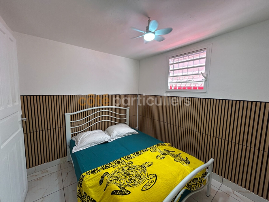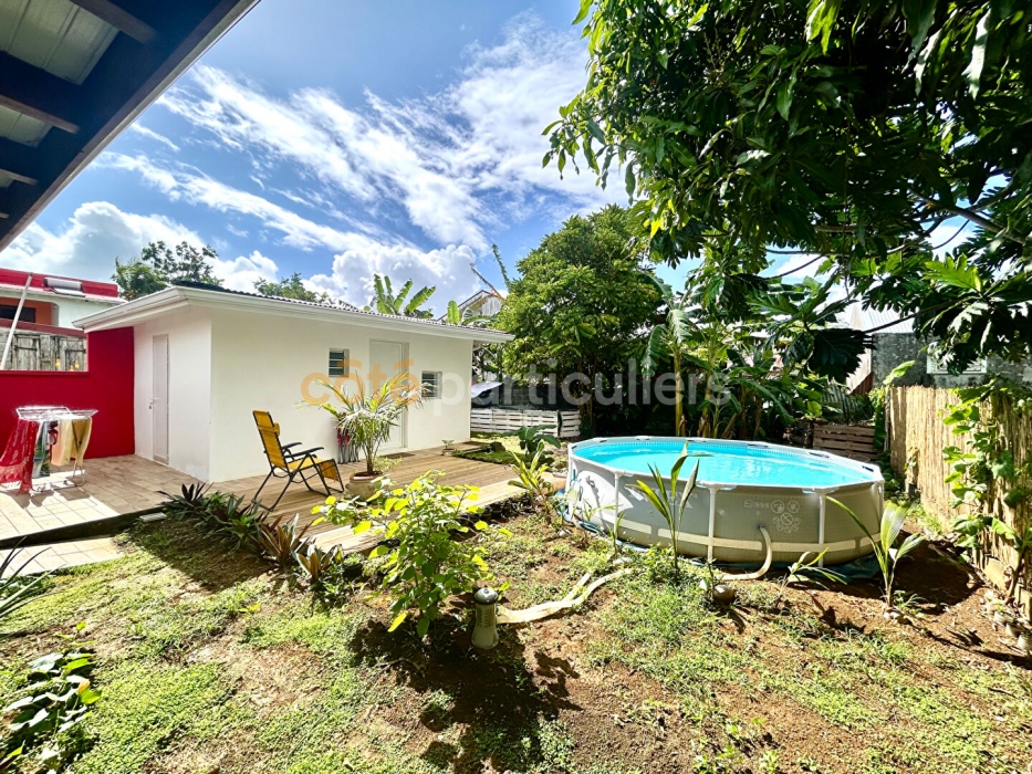 Cette maison rénovée de 91,72 m² habitables offre un cadre de vie confortable, fonctionnel et idéal pour une famille ou pour un projet locatif grâce à son studio indépendant. Description du bien La maison principale se compose de : - Un salon / salle à manger lumineux, parfait pour des moments conviviaux - Une cuisine moderne semi-ouverte, équipée d'un bar pour plus de convivialité - Une salle d'eau commune avec WC, récente et fonctionnelle - Deux bureaux aménageables en chambre - Une suite parentale avec salle d'eau privative et WC, offrant intimité et confort - Studio indépendant Un studio de 14,72 m², idéal pour accueillir un proche, exercer une activité ou générer des revenus locatifs. - Extérieur Le tout est implanté sur un terrain de 390 m², facile d'entretien, offrant des espaces extérieurs agréables pour profiter des beaux jours. AUCUN travaux à prévoir. Contactez-nous dès maintenant au 05 90 17 01 70 pour une visite ou plus d'informations ! Les informations sur les risques auxquels ce bien est exposé sont disponibles sur le site Géorisques georisques.gouv.fr (5.77 % honoraires TTC à la charge de l'acquéreur.)