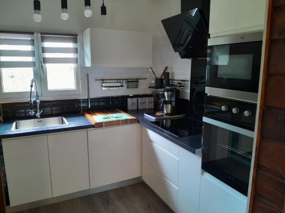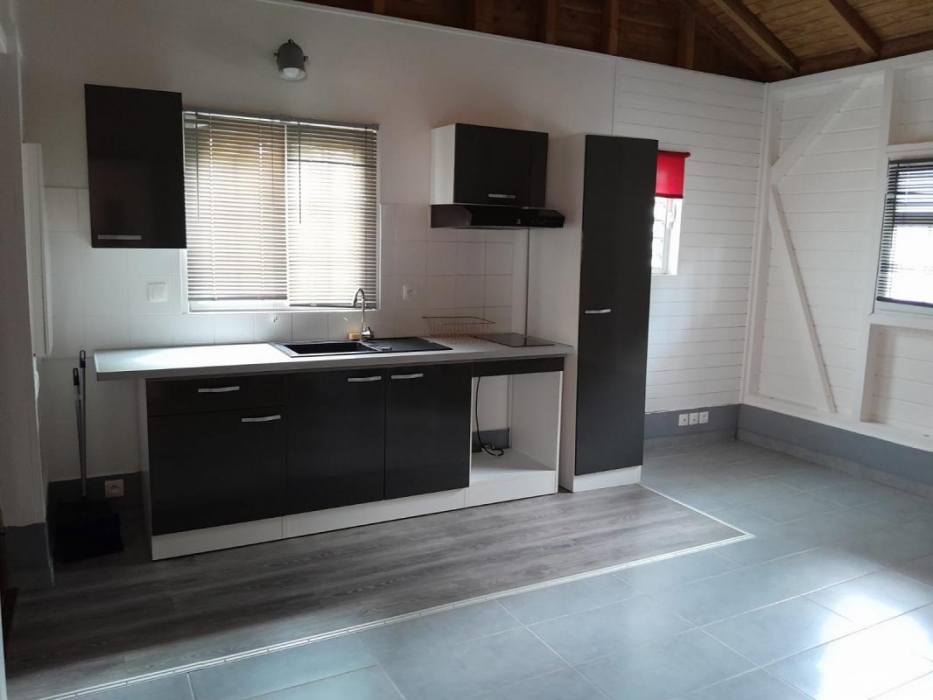 Le premier bungalow propose un séjour lumineux, une cuisine équipée et aménagée, une chambre, une salle d'eau et une terrasse idéale pour profiter du plein air.