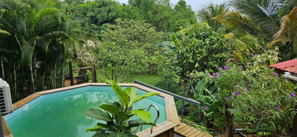 Situé dans un quartier paisible et prisé, à proximité des plages et des commerces, découvrez ce charmant ensemble immobilier comprenant deux bungalows sur un vaste terrain arboré de 1118 m², avec piscine, carbet et cabanon de jardin.