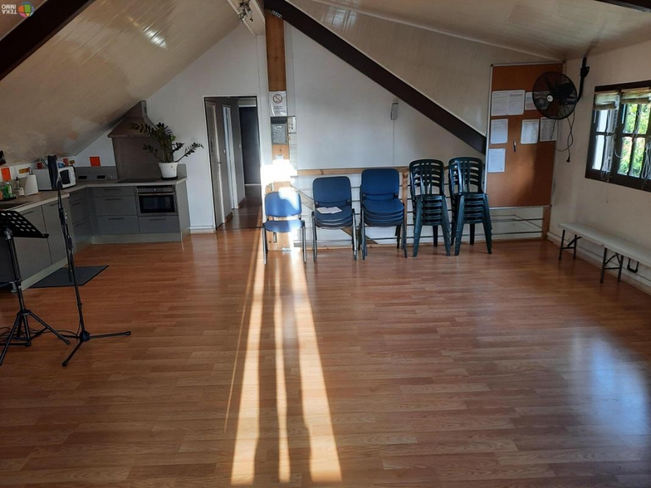 Salle de bain avec douche italienne, WC et garage fermé, buanderie et véranda . A l'étage (comble) séjour de 43.7m² avec cuisine