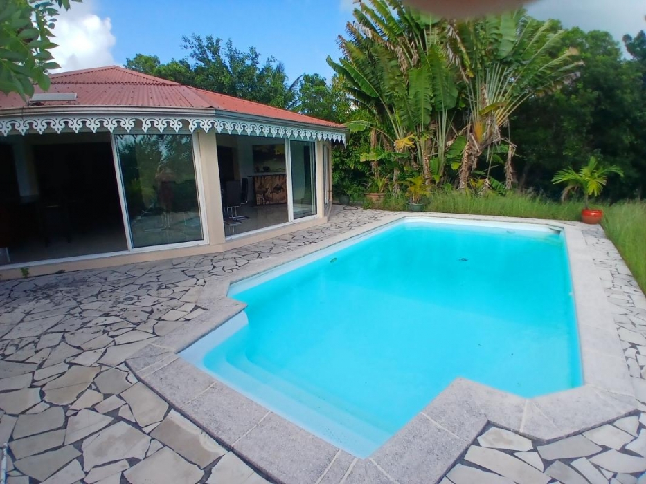 Orpi Ducos vous propose une belle maison T4 avec studio attenant, et deux T3 inachevés, en monopropriété sur une parcelle de 2477 m² , avec piscine et vue mer sur le rocher du Diamant sans aucun vis -à-vis, nichée dans un écrin de verdure.