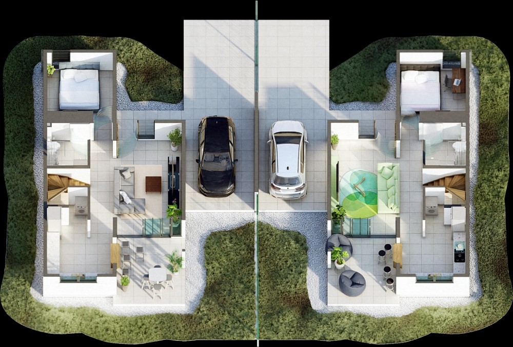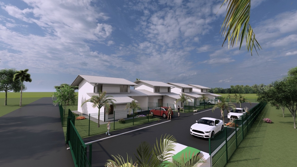 Découvrez La Résidence KENTIA qui comprend : - 4 VILLA de type T5 jumelées par le garage d'une surface habitable 93m² offrant un confort de vie optimal se dessinant comme suit: - Au RDC : un salon, une cuisine, une buanderie, salle d'eau, une chambre - Au R+1: 3 chambres, un dégagement, espace de rangement Sur une parcelle d'une superficie de 400m² - abri voiture - gouttière - terrains clôturés et piscinable