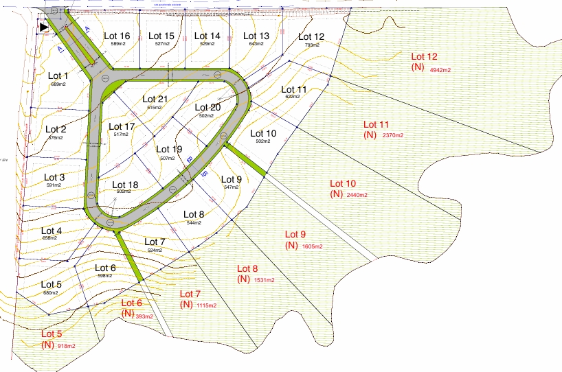 21 lots surfaces d’environ 500 à 800 m2 environnement calme et verdoyant