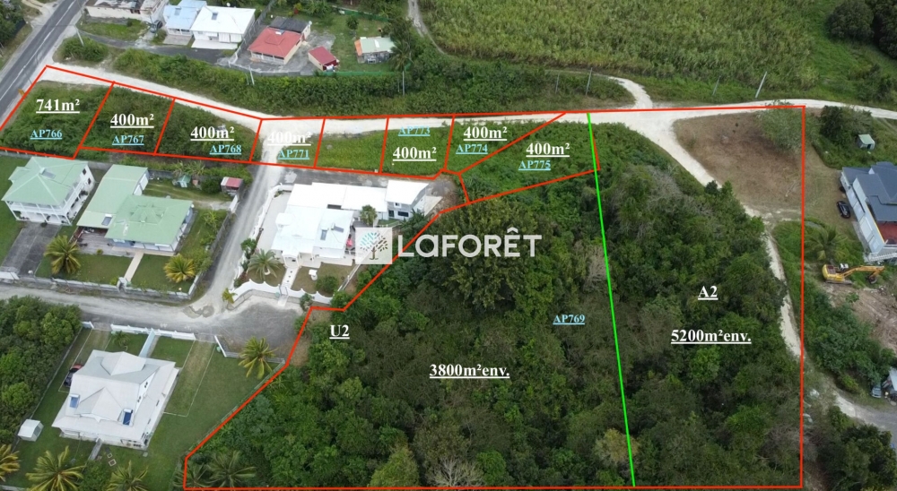 Laforêt Baie Mahault vous présente en exclusivité dans le charmant secteur de Roujol à Petit-Canal, une opportunité rare d'investissement immobilier à seulement 20 minutes du futur CHU de Guadeloupe. Nous vous proposons plusieurs terrains à bâtir dans un lotissement viabilisé, offrant un cadre de vie agréable entre nature et modernité. Ces parcelles bénéficient d'un environnement calme, verdoyant et idéal pour votre future résidence principale ou un projet locatif. Le lotissement se compose de six terrains viabilisés de 400 m² chacun au prix de 77 000 euros, d'un terrain viabilisé de 741 m² au prix de 132 000 euros, ainsi que d'un grand terrain, viabilisation proche, de 9 067 m² dont 3 800 m² environ sont constructibles et 5 200 m² en zone agricole, proposé à 283 400 euros. Leurs emplacements privilégiés permettent un accès rapide aux axes principaux, aux écoles, aux commerces et aux commodités de la région. En résumé, ces terrains représentent une excellente opportunité d'investissement dans une zone en plein développement, combinant tranquillité, accessibilité et fort potentiel de valorisation. N'attendez plus pour concrétiser votre projet immobilier à Petit-Canal. Contactez l'agence LAFORET de Baie-Mahault au xx-xx-xx-xx-xx pour plus d'informations ou pour planifier une visite personnalisée. " Les informations sur les risques auxquels ce bien est exposé sont disponibles sur le site Géorisques: www.georisques.gouv.fr" Olivier MAZAUD (EI) Agent Commercial - Numéro RSAC : 502830094 - PAP.