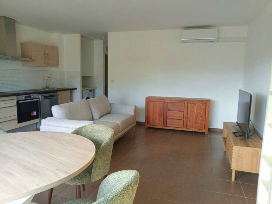 Intérieur : Une entrée , un séjour climatisé , une cuisine entièrement équipée (plaque, hotte, four, lave-vaisselle) , un WC indépendant , une salle d’eau fonctionnelle , une chambre climatisée avec placard