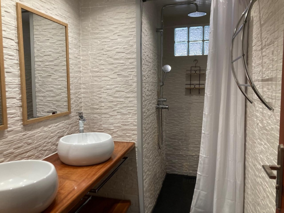 Accessible de plain-pied malgré sa situation en R+1, il se compose de deux grandes chambres climatisées avec rangements intégrés, d’une cuisine aménagée et équipée, d’un séjour lumineux, d’une arrière-cuisine spacieuse . La salle d’eau est moderne, avec double vasque.