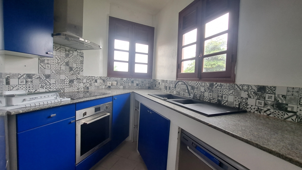 Le bien se compose comme suit : un vaste séjour lumineux et ventilé, une cuisine ouverte aménagée, deux chambres, chacune équipée d’un brasseur d’air, une salle d’eau refaite à neuf, une terrasse côté rue et un balcon côté rivière offrant une vue dégagée avec aperçu mer.