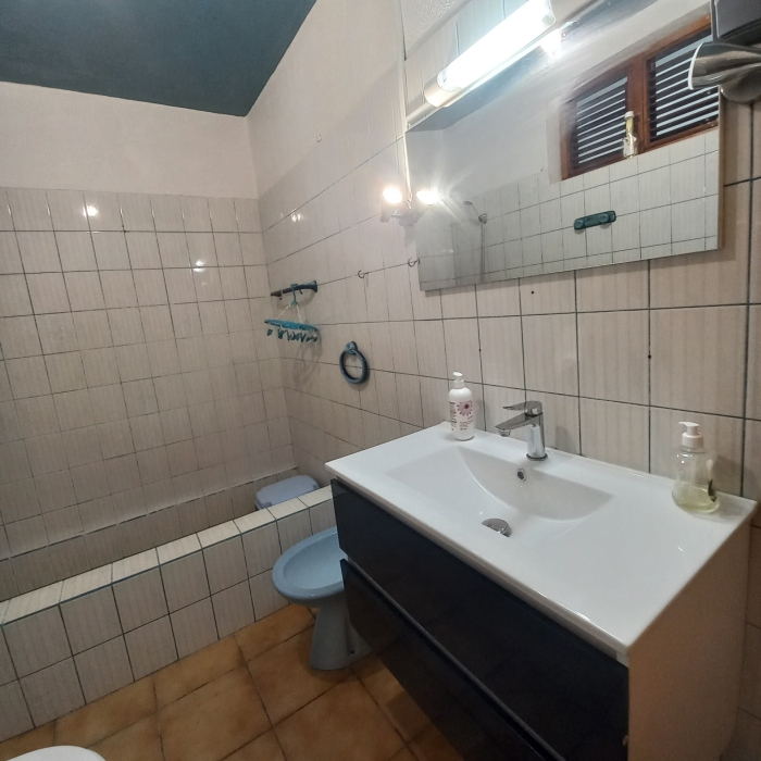 A louer sur les hauteurs de Village à Bouillante, un appartement en bas de villa meublé d'une surface de 52 m2 composé d'un salon, une cuisine équipée, un chambre, une buanderie, une salle d'eau avec toilette. Une galerie de 22 m2 avec vue sur la campagne et la mer, un jardin à disposition. Stationnement des véhicules devant l'appartement. Environnement très agréable et au calme. Le loyer est de 630 € charge eau et électriciré comprises. Location entierement équipée avec TV et climatisation dans la chambre. Le dépôt de garantie est de 2 mois soit 1260 euros.