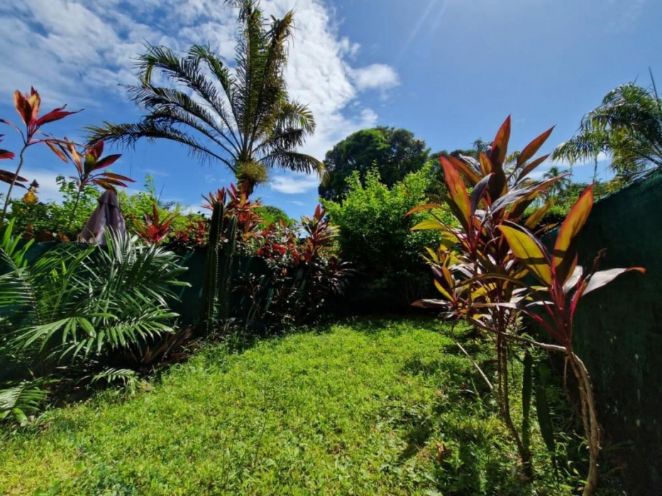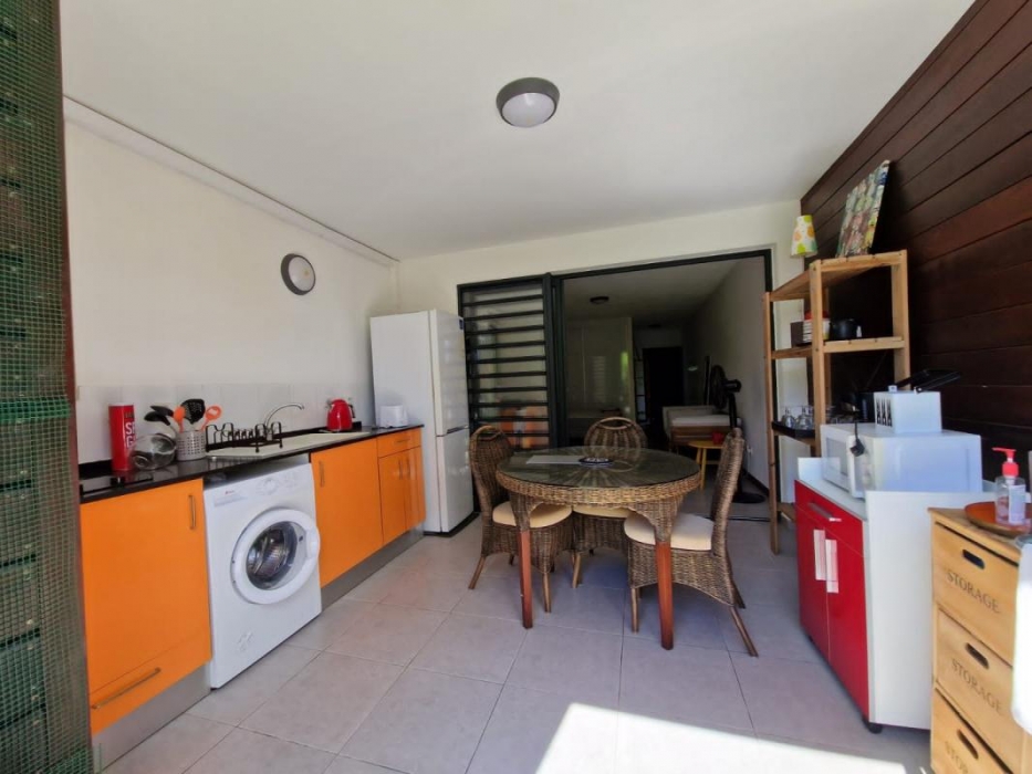 Vous pourrez également profiter d'une varangue cuisine et salle à manger, complètement équipée et attenante à un jardin privatif et de 21m2.