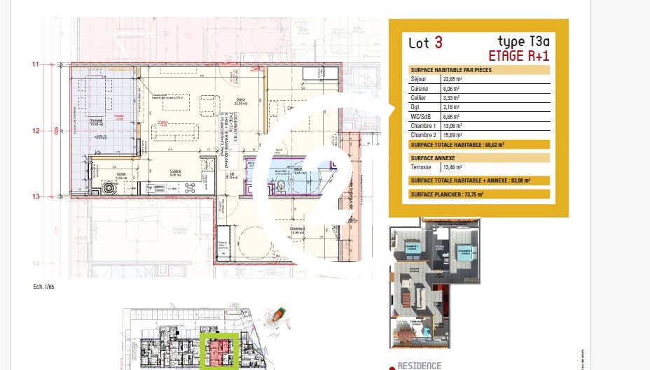 T3 disponibles: LOT 3 R=1 et LOT 14 au R+2 Surface habitable d'environ 68m² + 13 m² varrangue Loyer mensuel : 890 + 60 de provisions de charges de copropriétés.