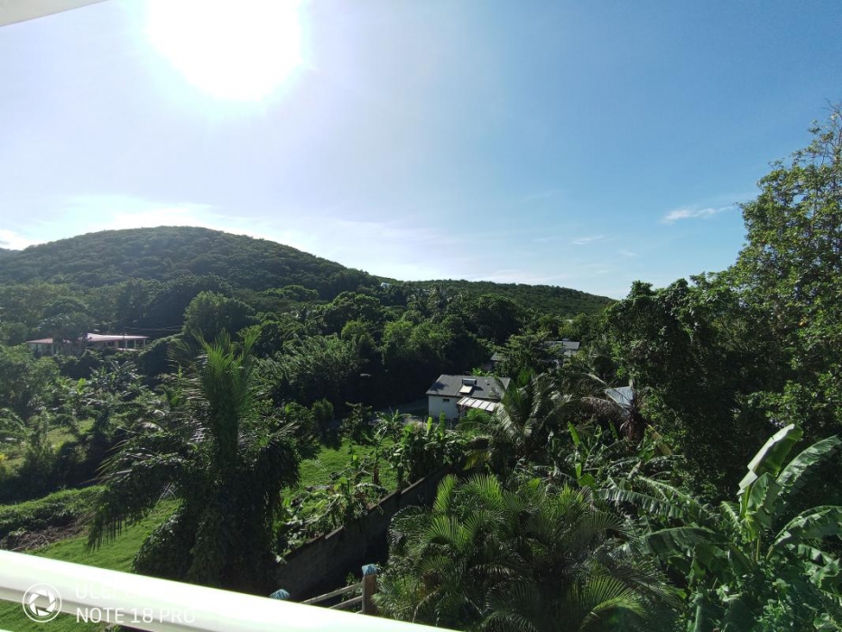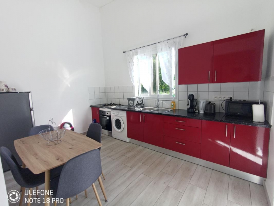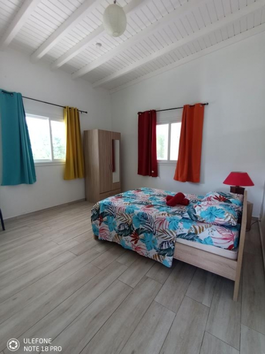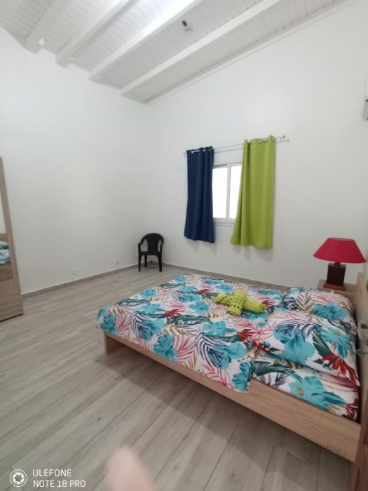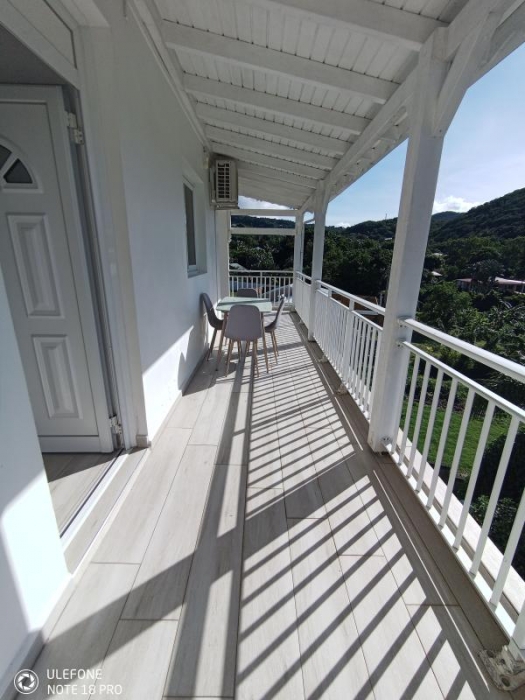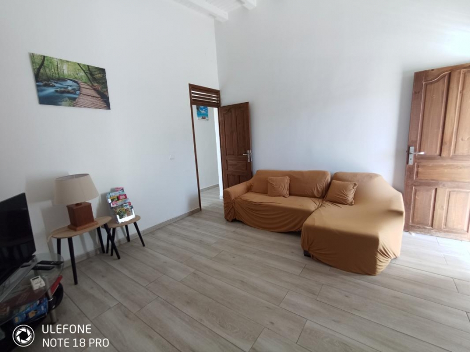Haut de villa de type T3 meublé composé d'une entrée, un séjour, une cuisine ouverte aménagée et équipée, donnant sur la terrasse, un dégagement, deux chambres climatisées, une salle d'eau wc et un wc avec lave main. Une terrasse en L.