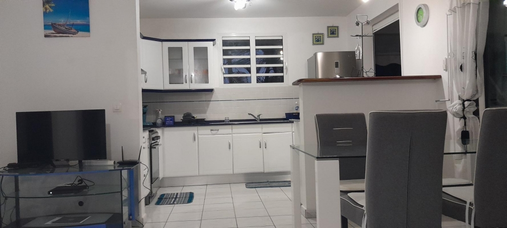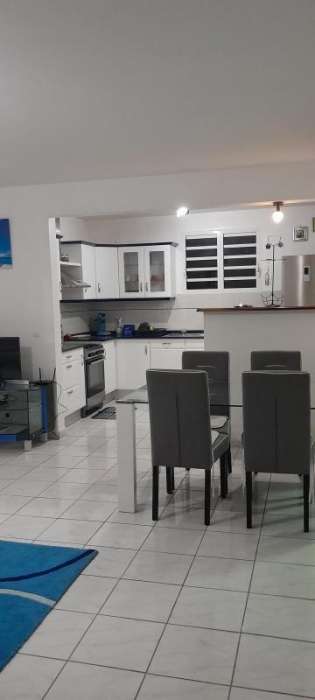 L 'appartement comprend : un séjour, une cuisine équipée ouverte, un dégagement, une salle d'eau, un WC indépendant, deux chambres climatisées avec placards, une buanderie, une grande terrasse et deux places de parking numérotées.