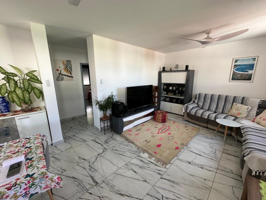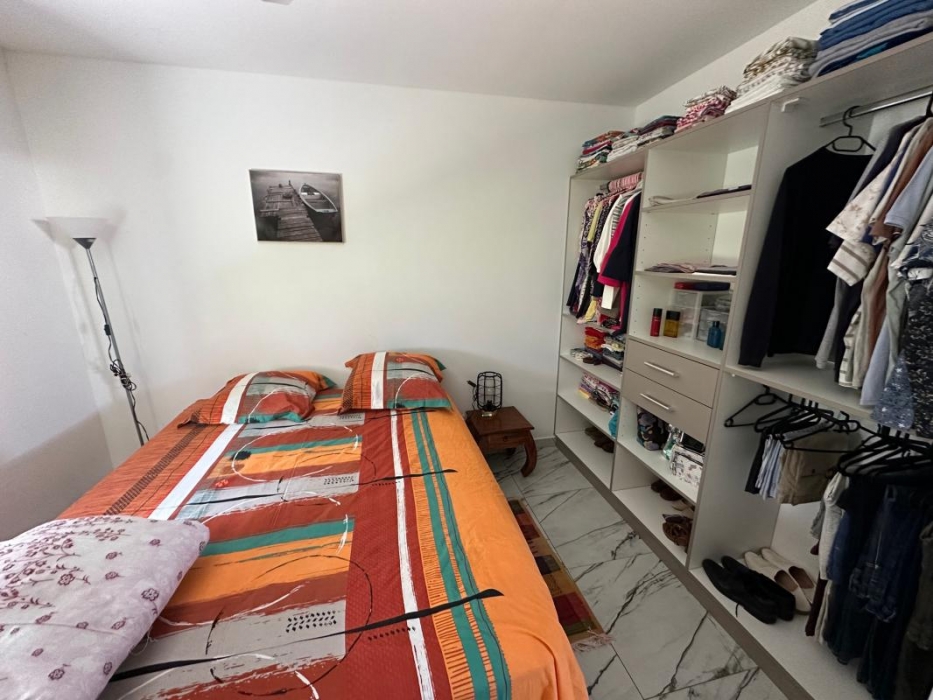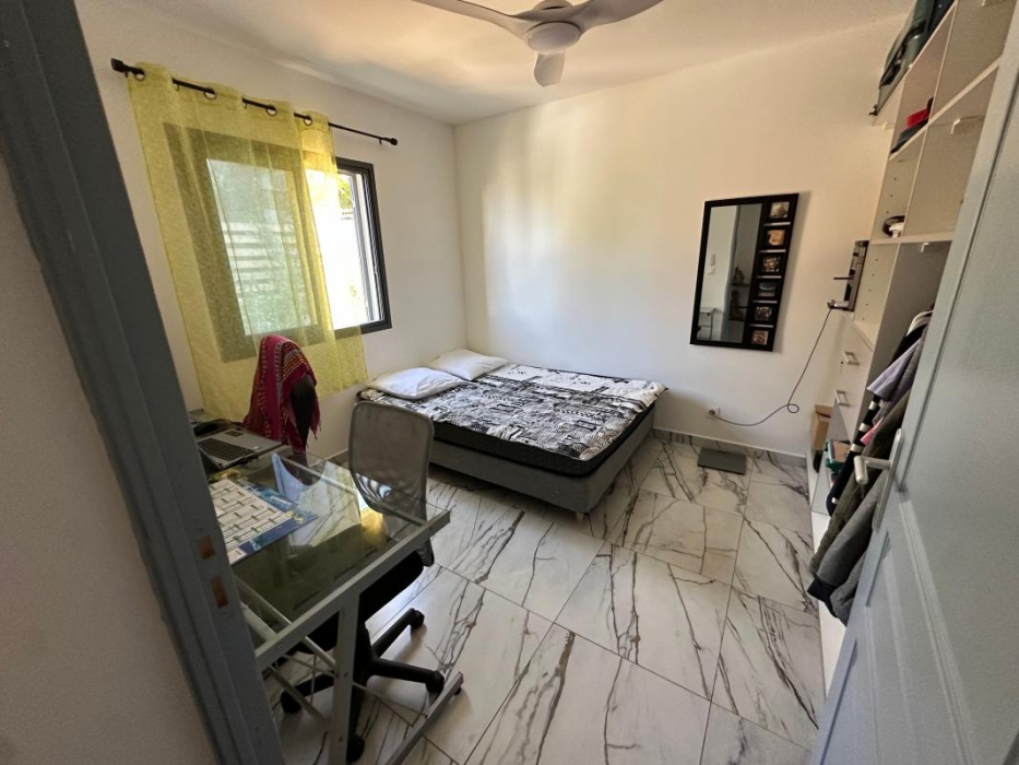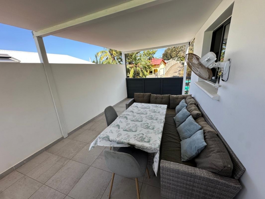 Maison individuelle de type F3 meublé avec jardin, espace intérieur non couverte pour voiture, d'une surface habitable de 74 mètres carrés + terrasse semi couverte de 30 m² soit 104 m² au total.