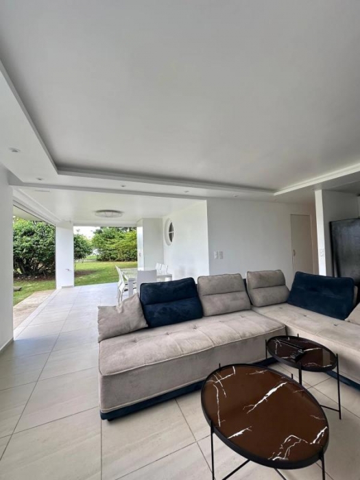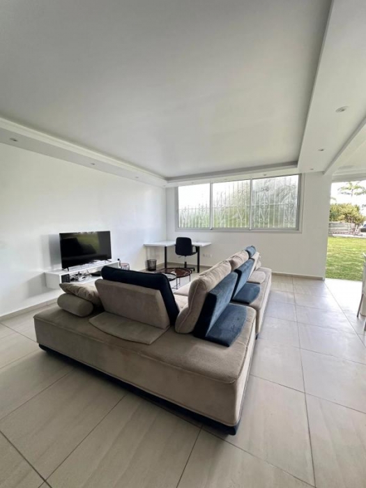Bel Appartement T3 meublé en rez-de-jardin, situé à Bas-du-Fort, quartier très prisé du Gosier, à proximité des commerces et de la Z.I. de Jarry, dans une résidence sécurisée avec grande piscine, et accès à une petite plage.