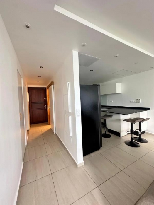 Il est composé : d'un 1 dégagement avec placard, 1 wc indépendant, 2 chambres climatisées avec rangement, 1 salle d'eau aménagée, 1 cuisine américaine, aménagée et équipée donnant sur un grand séjour, terrasse.