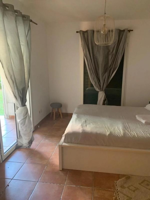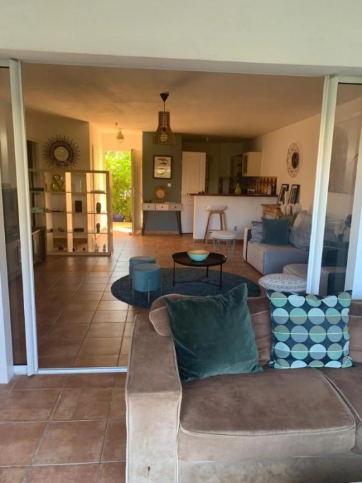 Il est composé d'une entrée, 1 wc indépendant, 1 cuisine aménagée et équipée ouverte sur un séjour, 1 chambre parentale climatisée avec placard et sa salle de bain avec wc, attenante, 1 chambre climatisée et sa salle d'eau avec placard attenante, terrasse, jardin, 1 place de parking privée.