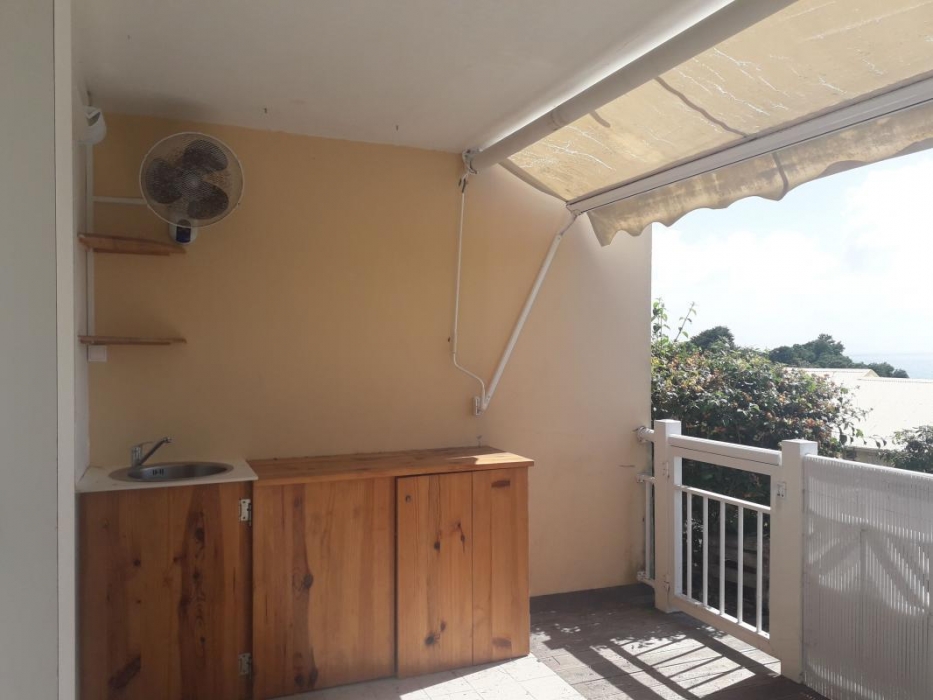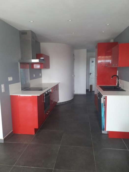 Une grande terrasse avec coin cuisine extérieur et un portillon donnant accès au parking si besoin. Disponible au 1er janvier 2026.