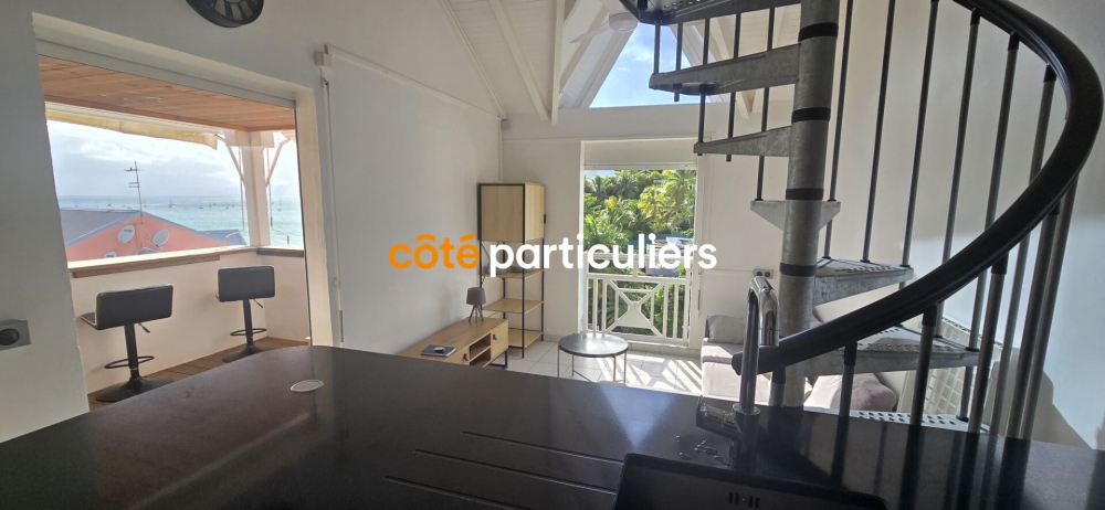 Très bel appartement en duplex, entièrement meublé, avec terrasse aménagée et vue mer sur l'ilet Gosier. Il offre deux chambres climatisées avec de grands rangements (dont une en mezzanine), un séjour lumineux équipé d'un brasseur d'air pour plus de confort, une cuisine moderne équipée avec bar, lave-vaisselle et nombreux placards, une salle d'eau et un WC indépendant. Situé dans une résidence calme, sécurisée et verdoyante, vous pourrez profiter de la piscine à débordement, de votre place de parking ainsi qu'un accès direct à la mer. Disponible immédiatement. Contactez-nous pour visiter. Les informations sur les risques auxquels ce bien est exposé sont disponibles sur le site Géorisques : http://georisques.gouv.fr