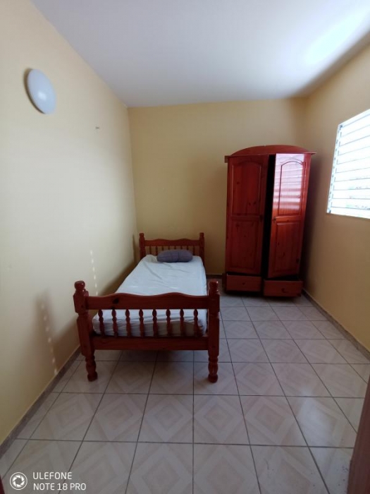Appartement de type T3 en rez-de-chaussée gauche, composé d'un dégagement, une cuisine aménagée et équipée, un séjour, deux chambres dont une climatisée et l'autre avec un lit simple, une salle d'eau/wc. Une terrasse avec une entrée commune à deux logements. L'eau et l'électricité compris dans le loyer.