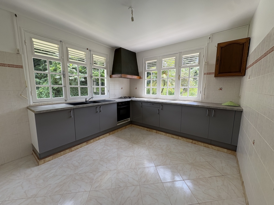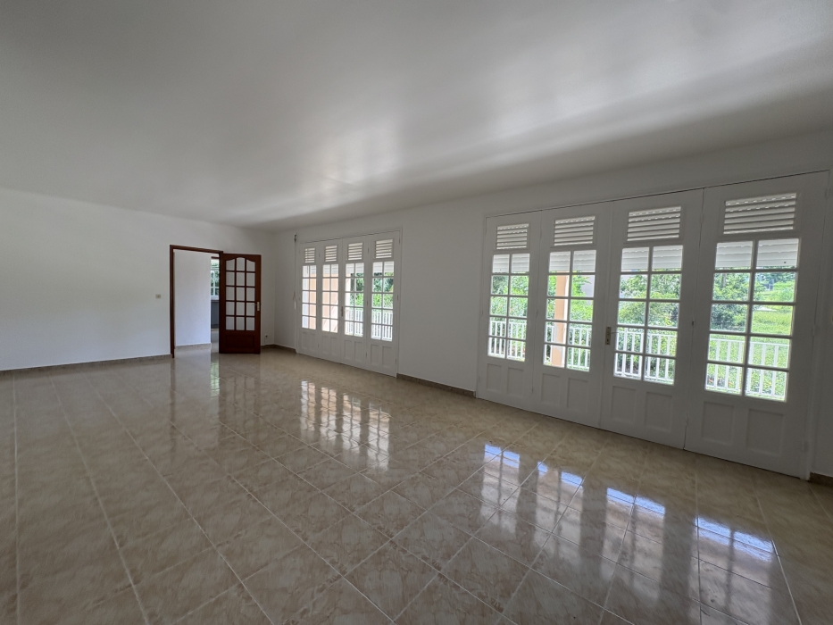 Situé sur le chemin de Pierret, à 15mn de Jarry, avec plusieurs commerces de proximité aux alentours, venez visiter ce haut de villa T5 loué vide de 180m2 de surface total. Il se compose d'une entrée en rez-de-chaussée avec un garage pouvant accueillir deux véhicules et espace buanderie, un escalier donnant accès au 1er étage composé d'un séjour très lumineux de 41m2, une cuisine équipée au gaz, hotte et four, 4 chambres dont une suite parentale avec salle de bain et WC, une salle de bain indépendante, un WC indépendant, un débarras. La grande terrasse de 40m2 agréablement ventilé avec la vue sur la campagne vous permettra d'apprécier le calme du quartier.