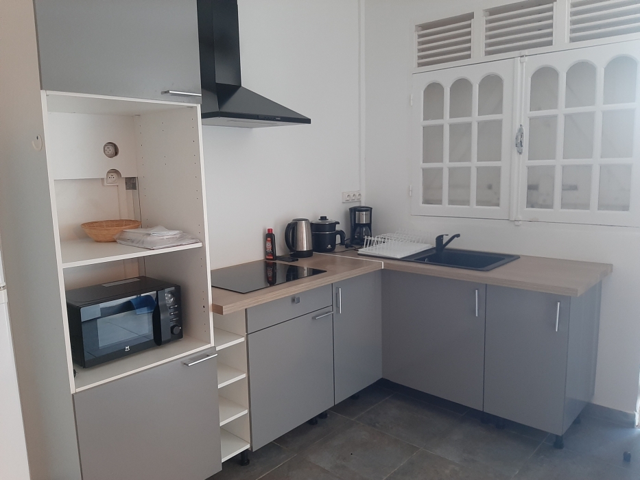 Profitez de belles prestations offertes dans cet appartement T2 meublé bas de villa, situé en plein bourg du Lamentin.