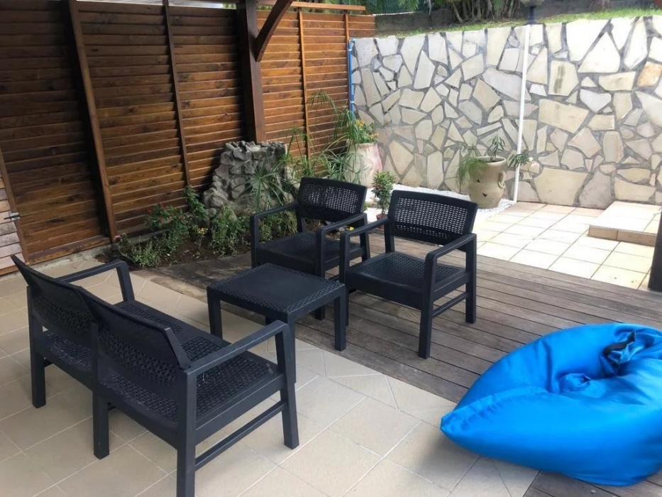 Ce bien est composé : d'une chambre climatisée avec salle d'eau et toilette, d'un salon avec une cuisine entièrement aménagée et équipée et une terrasse ouvrant sur un espace très ZEN et un jardin clôturé pour farnienter