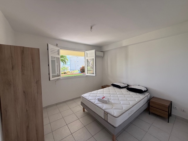 ACS IMMOBILIERS vous présente cet appartement T2 meublé , quartier MORNE PAVILLON , situé en rez de jardin , comprenant séjour lumineux , une cuisine aménagée et équipée , une terrasse couverte, une chambre climatisée et une salle d'eau avec wc .