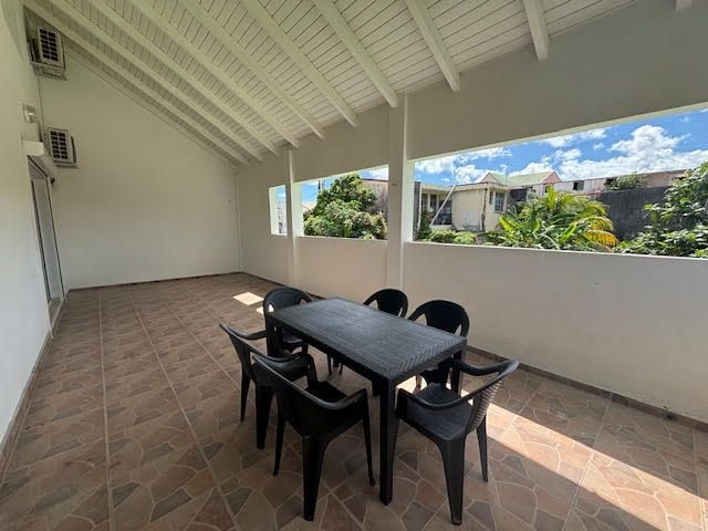 Exclusivité Orpi, magnifique appartement meublé proche des commodités! Il se situe au 1er et dernier étage d'un petit bâtiment composé de 3 appartements dans le centre ville du Moule au calme dans une rue très peu passante. Il se compose d'une pièce de vie spacieuse et lumineuse avec sa cuisine aménagée et équipée, une très grande terrasse couverte d'environ 33m², une chambre climatisée et une salle d'eau/wc. A l'étage deux chambres climatisées , un wc indépendant ainsi qu'un espace offrant la possibilité de se faire un coin bureau. L'eau est comprise dans le loyer, EDF à la charge du locataire. Le plus de cet appartement, il est équipé d'une citerne tampon donc pas de coupures d'eau. Disponible de suite! A visiter rapidement. ORPI, partenaire de votre projet immobilier. Retrouvez-nous sur www.orpi.com.