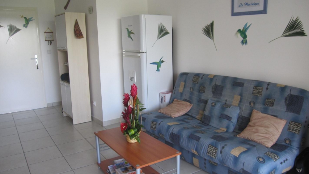 Charmant T2 meublé et équipé avec cave et emplacement de parking en extérieur, belle vue sur mer, à proximité de la plage, commerces et navettes maritimes pour Fort de France. Disponible le 15/09 visite possible