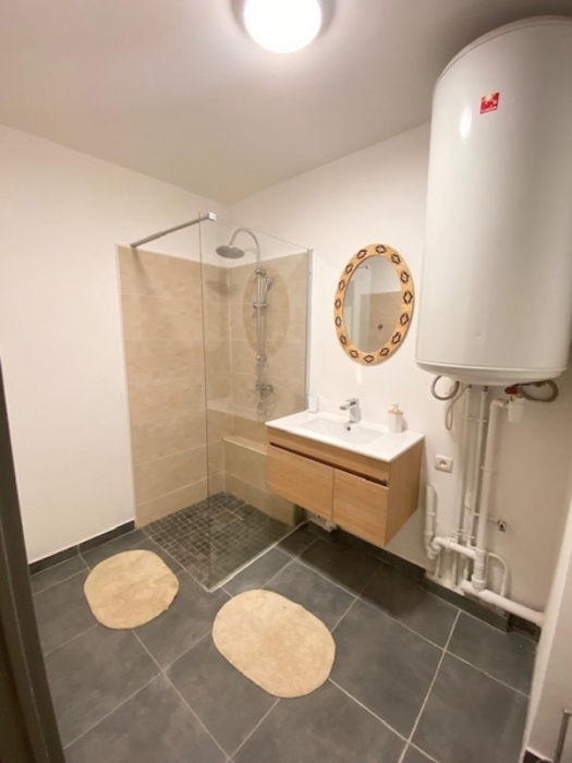 Appartement T2 meublé situé en Rez de Jardin sur élevé comprenant : Une entrée avec placard - Séjour et cuisine ouverte et équipée - Chambre lumineuse avec placard et grande fenêtre - Terrasse donnant vue à des végétations.