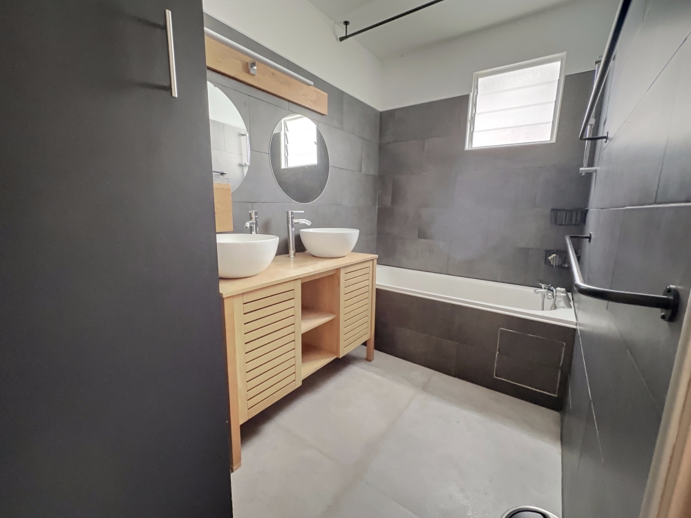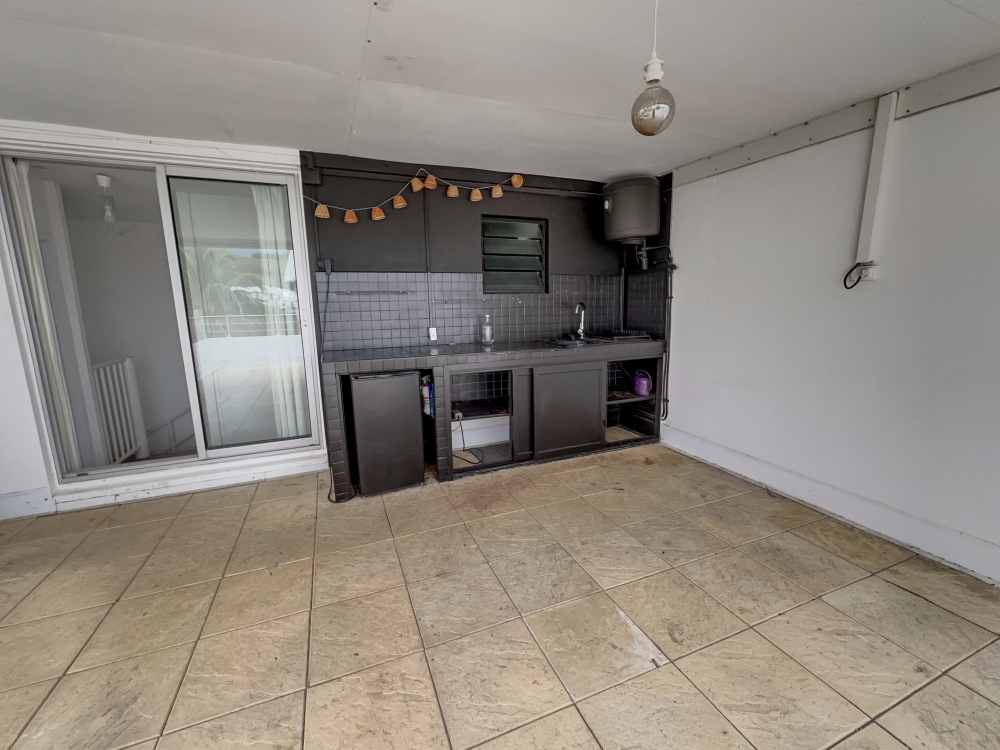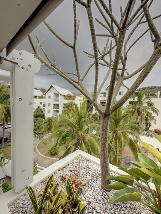 BOUCAN CANOT, dans une résidence bien entretenue avec joli jardin tropical, offrant calme et vue dégagée, grand T5 en duplex situé au 2eme et dernier étage sans ascenseur comprenant: