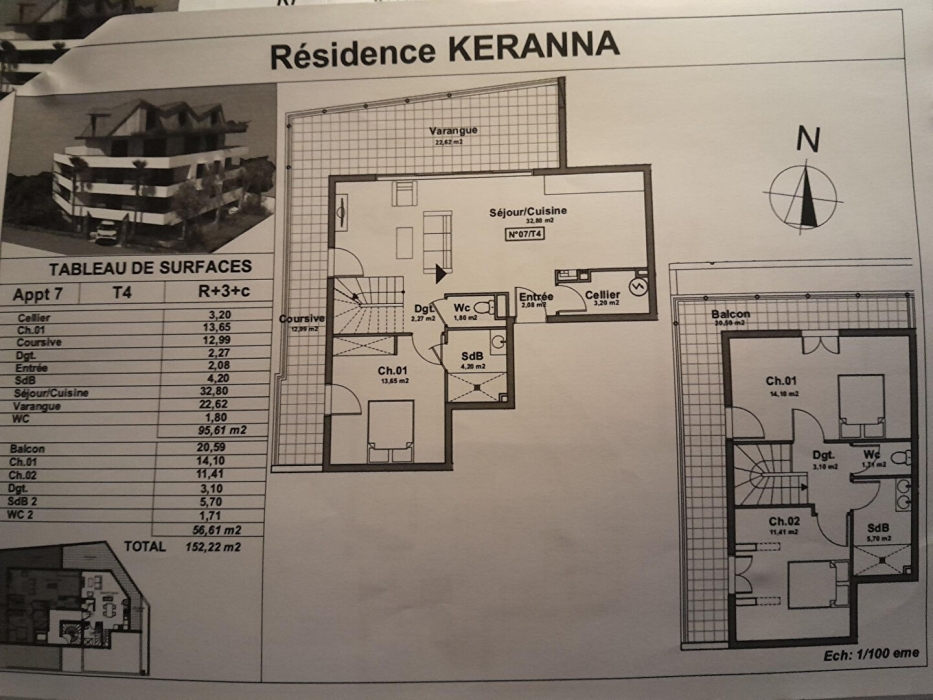 SAINT PAUL Centre ville Front de Mer - Résidence Keranna - très récent - Dernier étage avec ascenseur pour ce bel appartement T4 en duplex de 96m² ouvert sur 3 extérieurs avec belle vue mer / montagne. Cet appartement se compose d'une entrée, un grand séjour avec cuisine aménagée et équipée (hotte et plaque vitro) ouvert sur une varangue de 22,62m² et coursive de 13m², cellier, une chambre avec brasseur d'air et placard (+de 13m²), salle d'eau et wc séparé. A l'étage un dégagement desservant deux chambres de 14m² et 11,50m² avec brasseur d'air et placard, ouvertes sur un grand balcon de 20m² et bénéficie d'une belle vue mer, une second salle d'eau et wc séparé. Une place de stationnement Soumis à la défiscalisation Girardin IS Libre mi février AGENCE LOGER - Jérôme TECHER xx-xx-xx-xx-xx Copropriété de 8 lots ().
