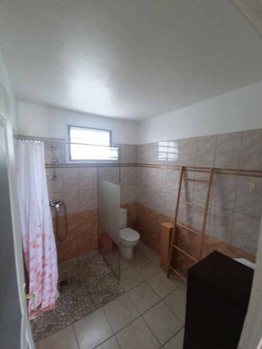 Appartement en bas de villa mitoyen de type T3 avec vue sur mer, composée d'un séjour avec brasseur d'air avec une cuisine aménagée et équipée, deux chambres climatisées avec brasseurs d'air, une salle d'eau avec wc, une terrasse couverte, un emplacement de parking, citerne tampon et citerne eau de pluie. Eau, électricité et entretien du jardin compris dans le loyer.