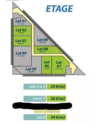 L'Agence MOLINARD vous propose différents lots à louer à l'étage d'un bel immeuble neuf très moderne et avec ascenseur.
