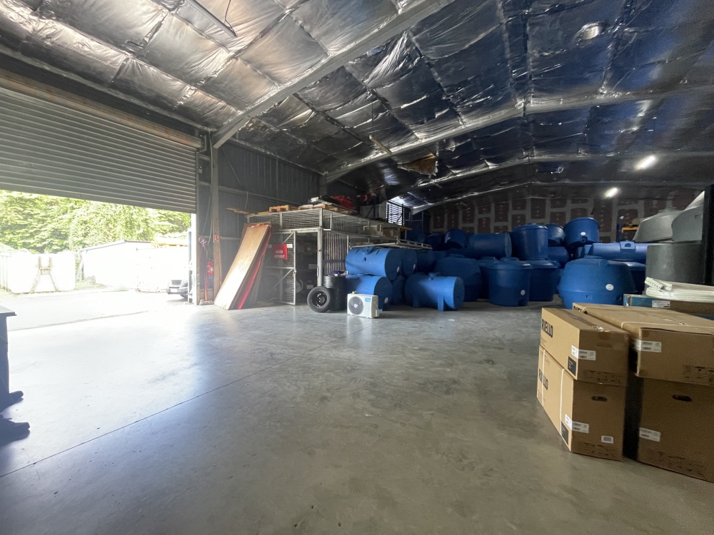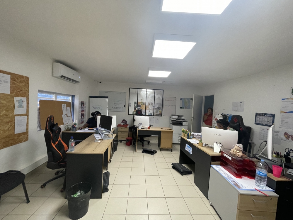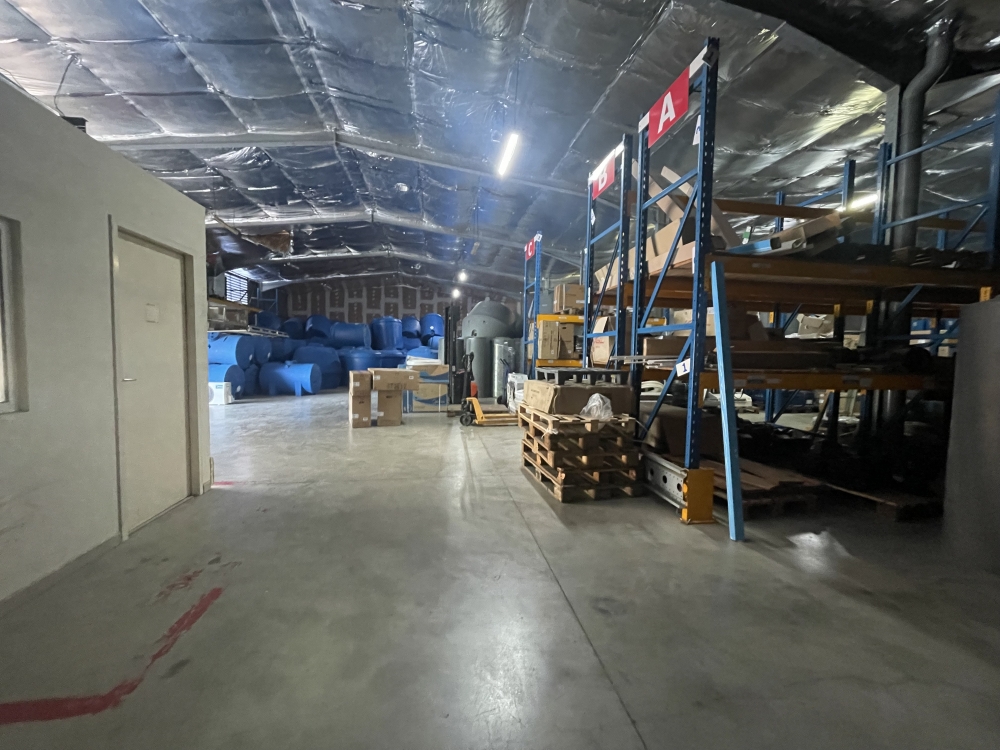 Dépôt d'environ 830 m², un petit bureau de 35 m² supplémentaire à l'intérieur intérieur, cinq bureaux d'une surface cumulée de 152 m² grand terrain avec possibilité de déposer des containers