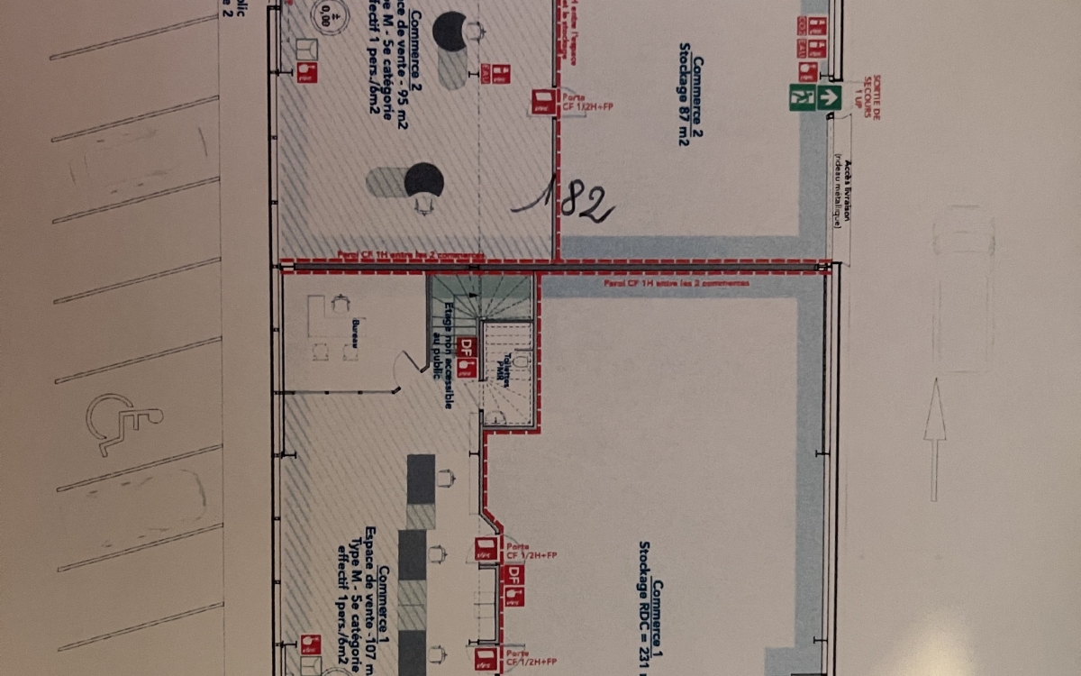 BATIMENT PROPOSANT 2 SURFACE COMMERCIAL AVEC MEZZANINE DE BUREAU + DEPOT + TERRAIN PARKING