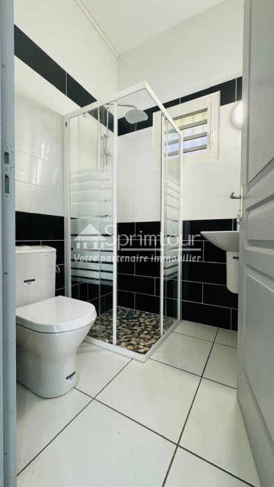 Il est composé d'une pièce principale fermée par un volet électrique accessible par une terrasse d'environ 9m2, d'une réserve, d'une salle d'eau avec WC. Il possède une seconde entrée à l'avant et d'un accès de secours par l'arrière.