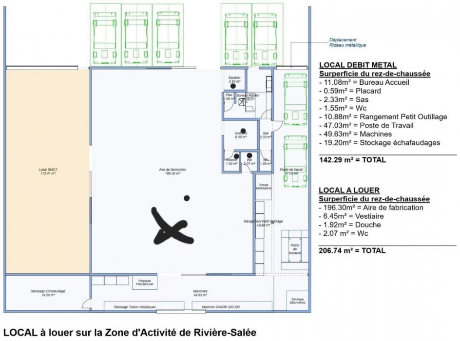 A louer grand local de 206 m² avec avec de très beaux volumes et grande hauteur, possibilité de création d'une mezzanine
