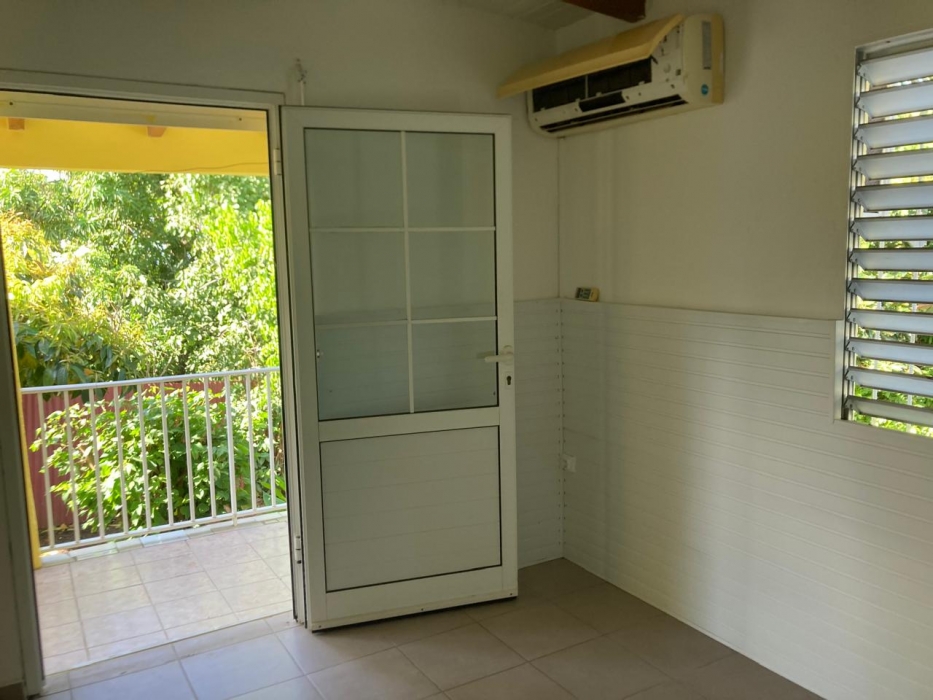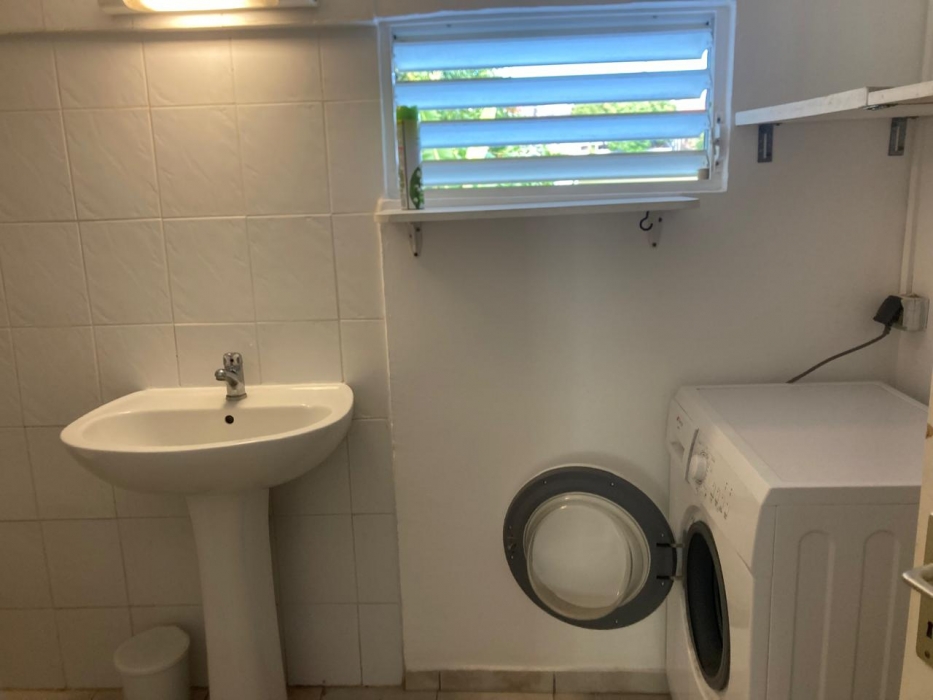 Ce logement comprend au rez-de-chaussée une terrasse couverte, un salon/séjour, une cuisine aménagée, une salle d’eau et WC, 2 chambres climatisées accédant à une autre terrasse couverte (vue jardin).