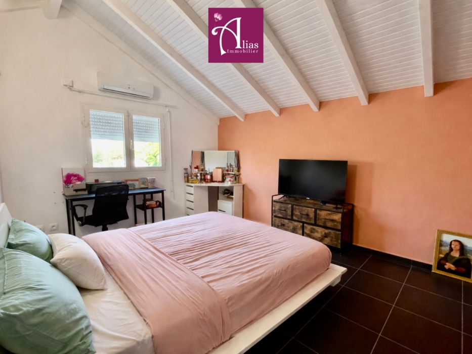 À l’étage, un dégagement dessert deux chambres climatisées et une seconde salle d’eau, offrant un espace nuit confortable pour la famille ou les invités.