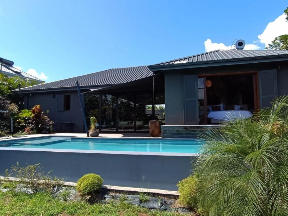 Très belle Villa T4 meublée de 170m2, prestations haut de gamme, située à Bragelogne Baie-Mahault dans un quartier calme proche des commerces et de la ZI de Jarry, comprenant : 1 entrée avec placard, 1 cuisine aménagée et entièrement équipée, 1 wc indépendant, 1 double séjour, 1 terrasse couverte et fermée, 1 suite parentale climatisée avec dressing et salle de bain, 1 dégagement avec placard buanderie avec lave linge et sèche-linge, 2 chambres climatisées avec chacune sa salle d'eau complète.