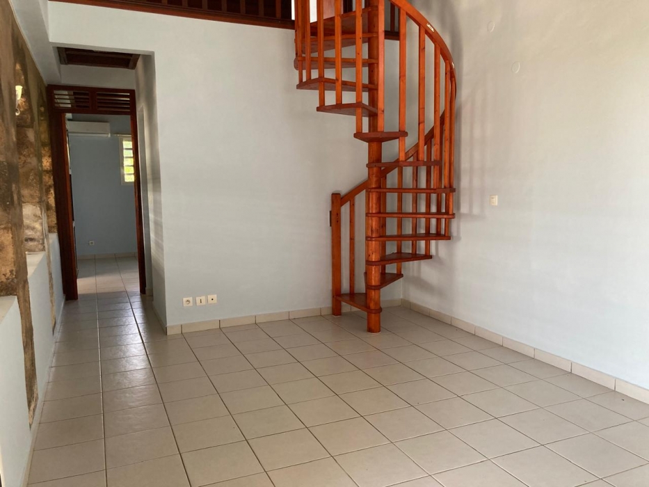 Ce logement non meublé offre une superficie habitable d’environ 54 m2. Il se compose d’un séjour lumineux, d’une cuisine indépendante, d’une chambre au rez-de-chaussée, d’une seconde chambre climatisée à l’étage ainsi que d’une salle d’eau fonctionnelle.