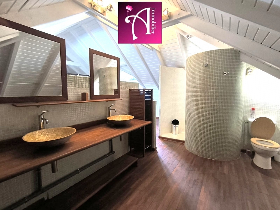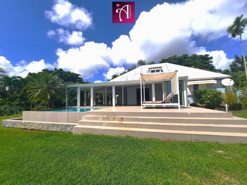 En quête de calme et de pleine nature. Cette maison de famille est faite pour vous. A 2 minutes de la nationale, nous vous présentons cette propriété nichée au coeur d'un parc verdoyant avec de nombreux arbres fruitiers ( avocatiers, citroniers, bananiers...). Elle se compose au RDC, d'une cuisine ouverte sur le séjour,d'un cellier, d'une immense terrasse donnant sur la piscine au sel à débordement, face à la campagne et la mer. Deux chambres avec chacune sa salle d'eau privative. L'étage est consacrée entièrement à l'espace parentale avec un dégagement pour le rangement et un coin bureau.